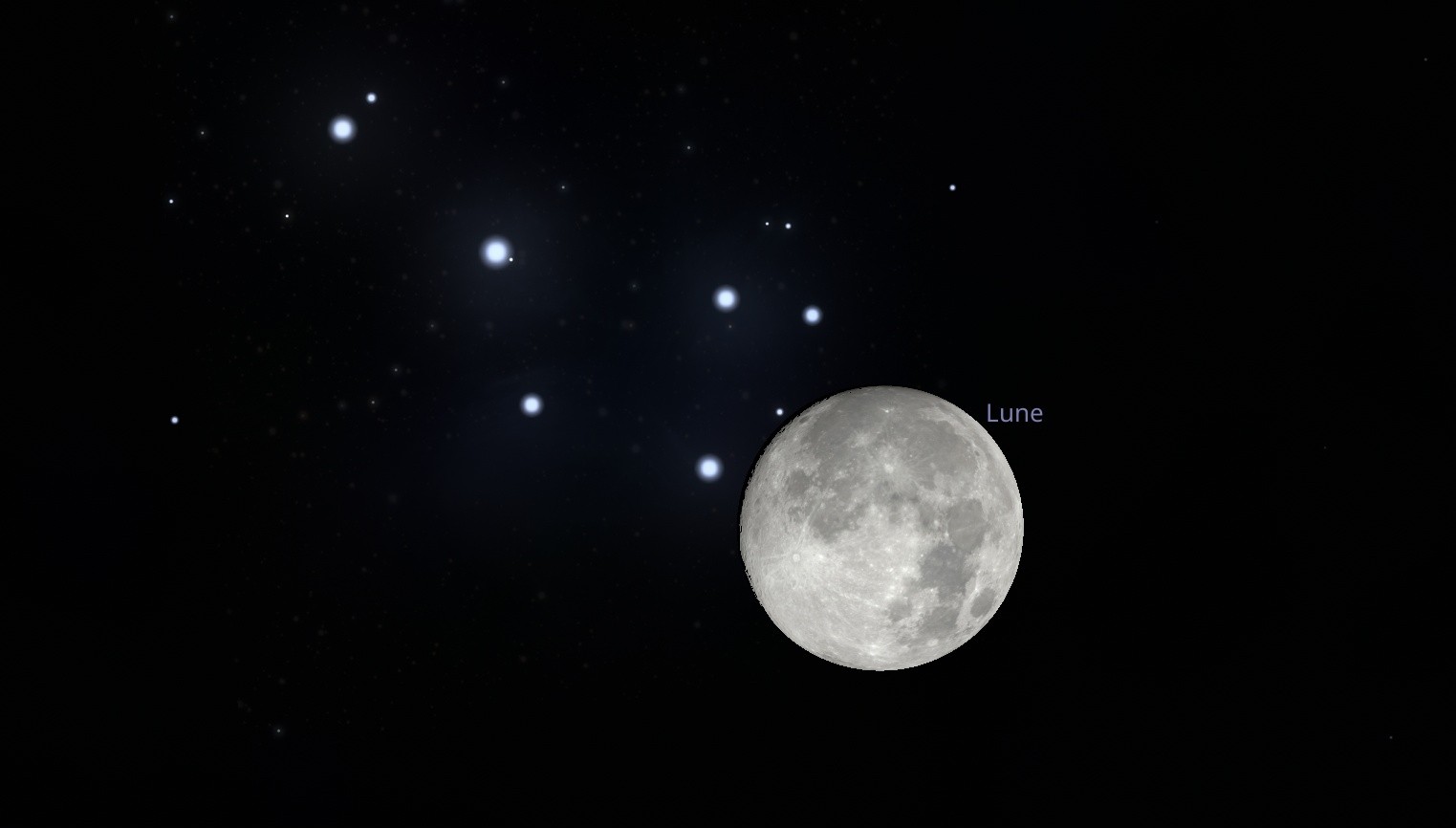 Notons tout d'abord que l’on ne mettra pas longtemps pour trouver la Lune puisque nous serons au lendemain de la pleine Lune. Cette dernière sera donc quasiment ronde et surtout encore très brillante.