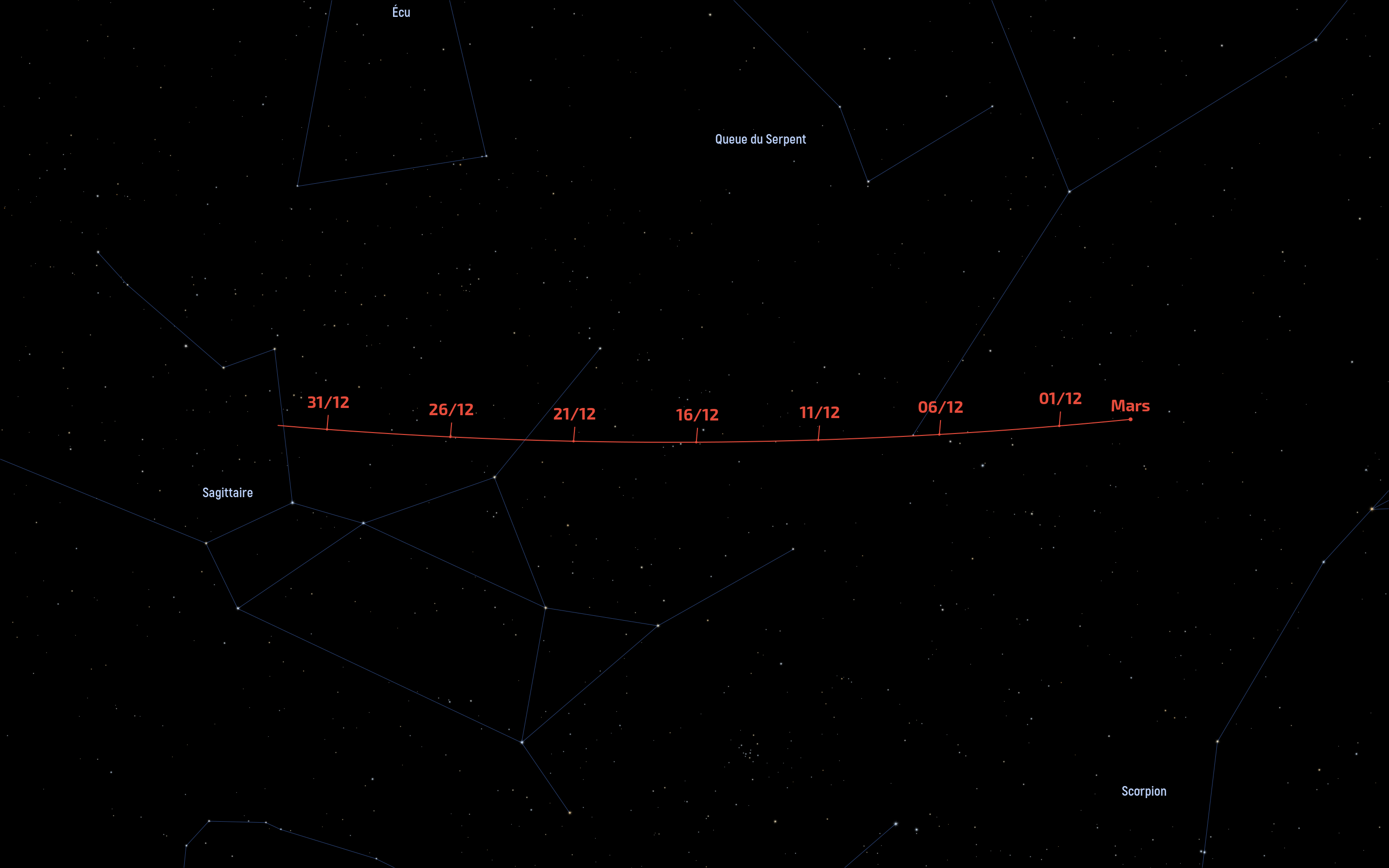 Au début du phénomène, les deux astres seront à rechercher assez haut dans le ciel, environ 35° au-dessus de l’horizon ouest.