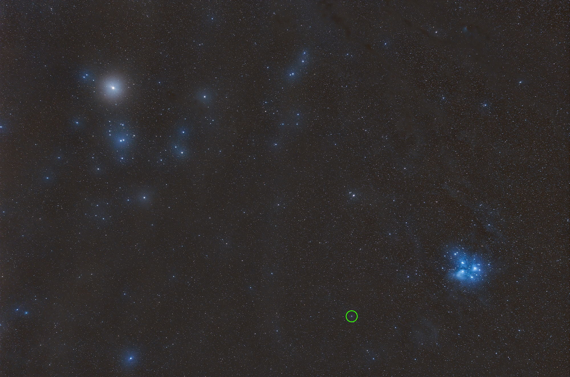 Si on ne présente plus la Lune régulièrement citée dans ces colonnes, on peut redire que les Pléiades sont constituées par une association d’environ 3 000 jeunes étoiles qui se sont formées ensemble il y a un peu plus de 100 millions d’années. Il s'agit d’un amas ouvert. Si cet âge peut paraître vénérable pour un humain, on rappellera que le Soleil a déjà vécu un peu plus de 5 milliards d’années et qu’il lui en reste autant à vivre. Cet amas appartient bien sûr à notre Galaxie ; il est situé dans le bras d’Orion, à environ 440 années-lumière du Soleil. L’amas couvre environ 2° dans le ciel (4 x le diamètre lunaire) et un œil humain peut distinguer entre 7 et 12 étoiles pour les plus aguerris. Point n’est besoin d’un gros télescope pour admirer ce bijou stellaire : les Pléiades sont absolument splendides dans une simple paire de jumelles.