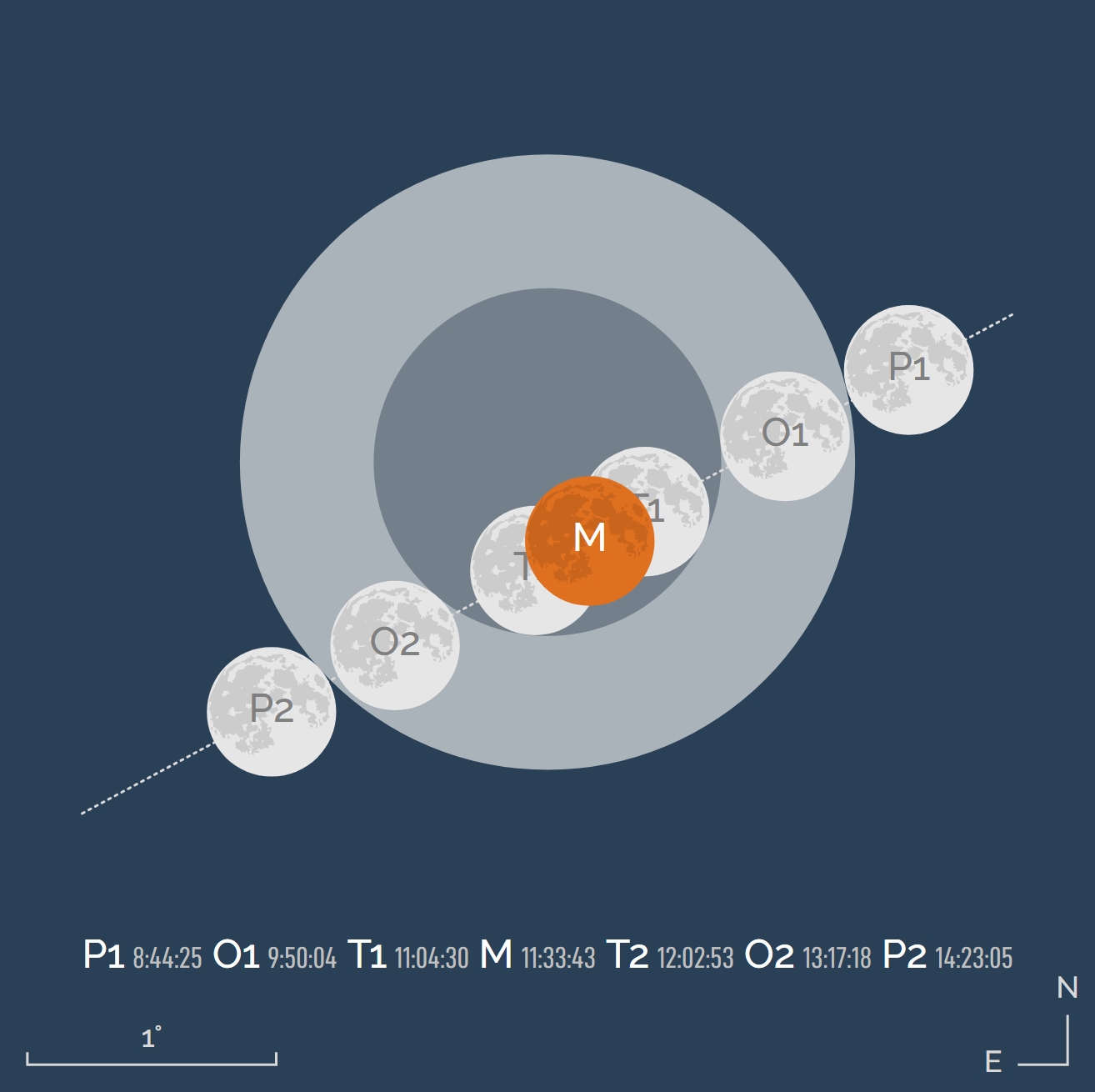 La phase de totalité de l’éclipse, pendant laquelle le disque lunaire restera dans l’ombre de la Terre, sera de 58 min. Au maximum de l’éclipse, la quantité de diamètre lunaire éclipsée (soit la grandeur de l’éclipse) sera de 1,151. Cette grandeur augmente avec la proximité de la Lune par rapport au centre de l’ombre.