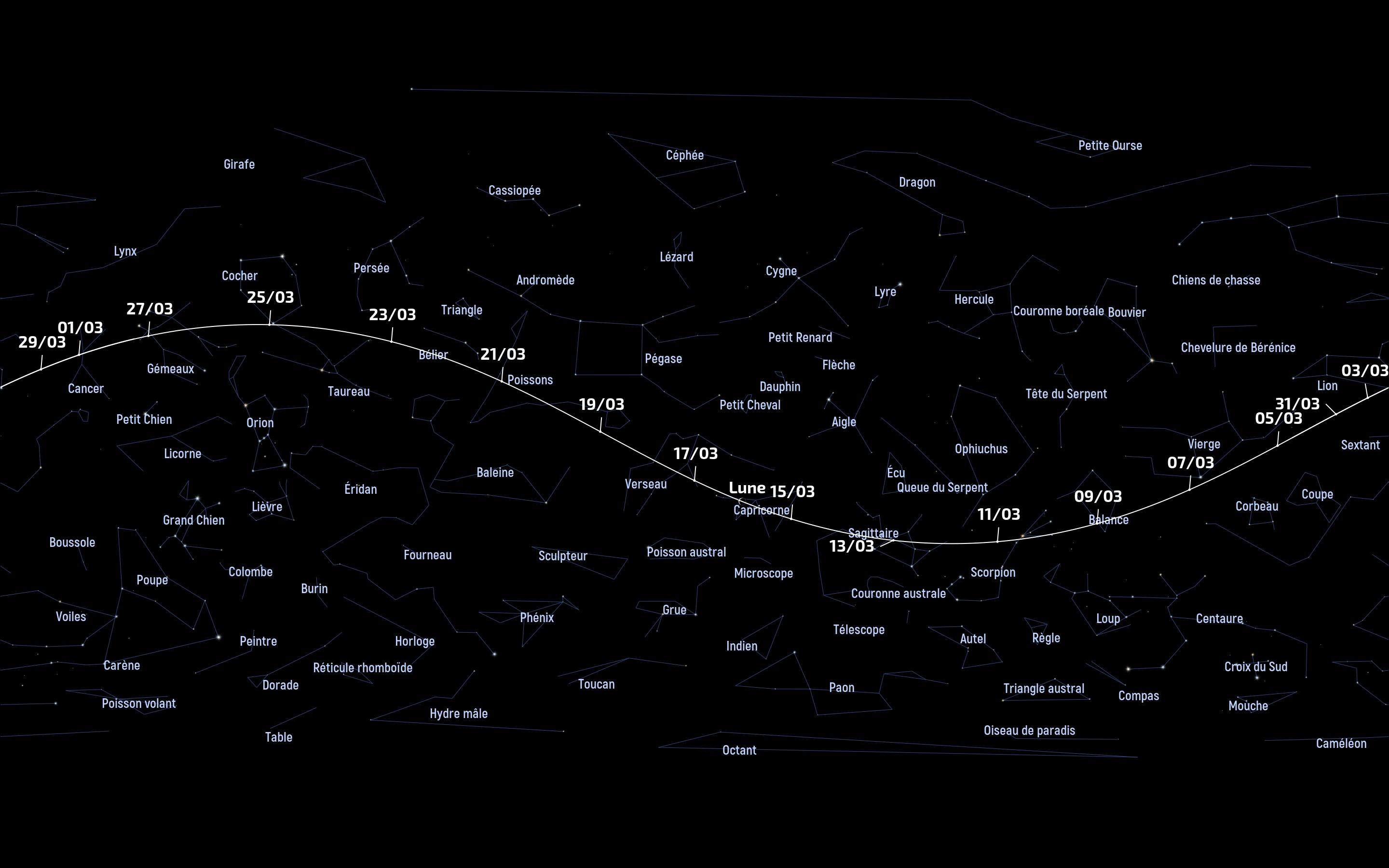 À l’instant du maximum, la Lune se trouvera dans la constellation du Lion.