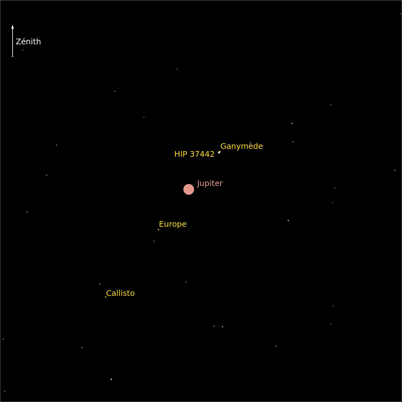 Le deuxième phénomène aura lieu dans la nuit du 21 au 22 octobre 2025 et avec les mêmes acteurs. C’est l’ombre de Io qui apparaîtra la première sur le limbe de la planète géante vers 23 h 30 UTC.