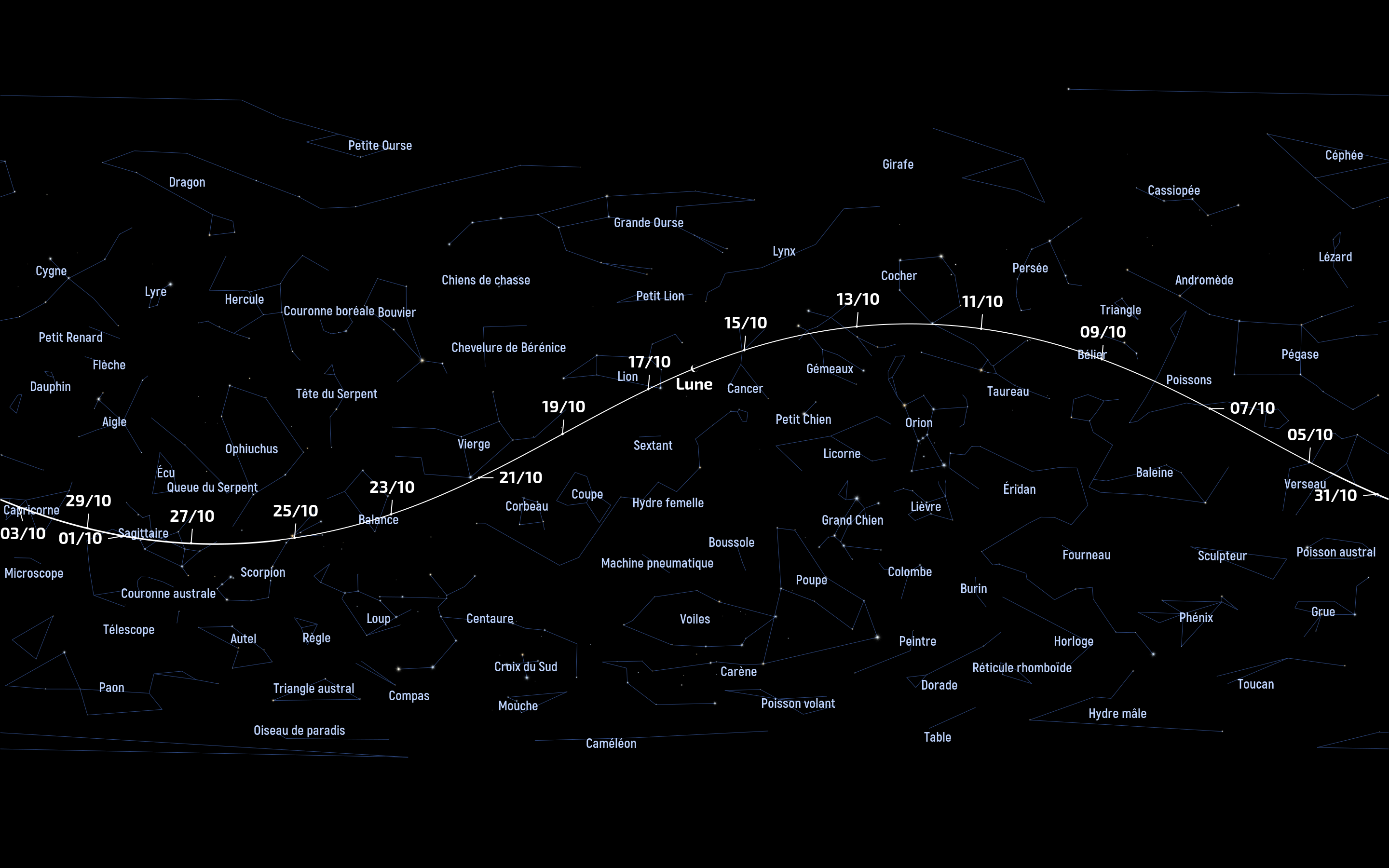 Précision importante :du fait de l’éloignement des deux planètes géantes, aucun de ces phénomènes ne sera visible à l’œil nu. À titre de repère, en octobre, Jupiter sera distante de 5 ua soit 750 millions de km de la Terre et Saturne sera située à 8,7 ua de la Terre soit 1,3 milliards km de la Terre. Il faudra donc impérativement être équipé d’un instrument d’astronomie installé sur une monture équatoriale pour la stabilité. Si une lunette de qualité (apochromatique) d’au moins 100 mm de diamètre est requise pour les phénomènes visibles sur Jupiter, il faudra environ 200 mm pour les phémus autour de Saturne :en effet, si Thétys affiche une magnitude de 10,16, Mimas n’offrira qu’une magnitude de 12,86. Dans les deux cas, un télescope bien collimaté avec des optiques propres sera requis, un diamètre de 300 mm offrira des images bien plus confortables et esthétiques.