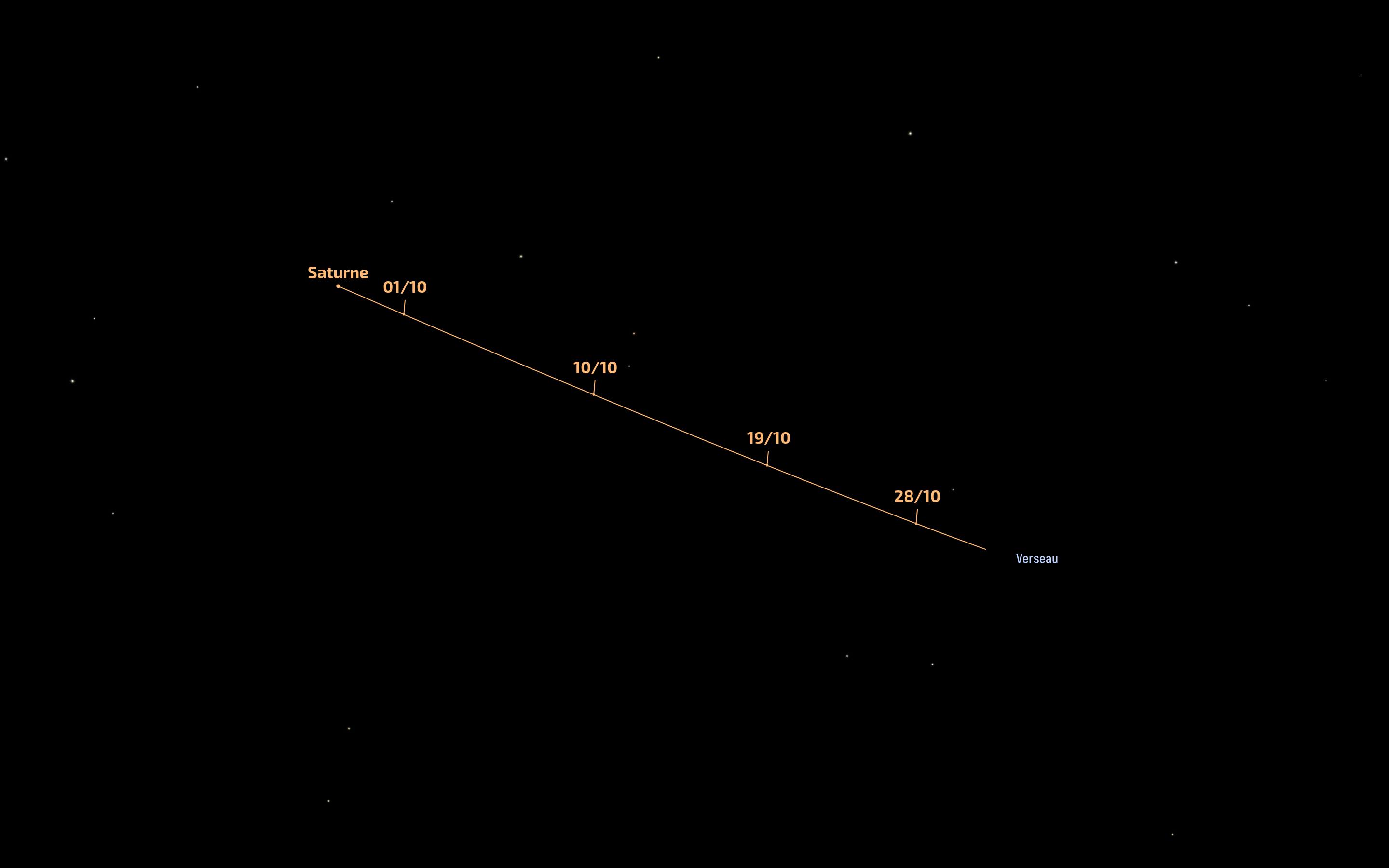 Sur Saturne tout d’abord, nous pourrons assister à des phénomènes mutuels (parfois abrégés en "phémus"). Cette expression signifie que des satellites de Saturne vont s’éclipser ou s’occulter. Notons qu’il existe des phénomènes similaires pour Jupiter. Cela peut se produire lorsque le Soleil passe dans le plan orbital des satellites. Les satellites tournant dès lors dans le même plan, vus depuis la Terre, l’un va passer devant l’autre et donc l’éclipser. En octobre 2025, pas moins de quatre phémus auront lieu. Nous nous focaliserons sur ceux des 1er et 21 octobre. Rappelons que la période actuelle est favorable à ces observations puisqu’elle se situe dans un vaste ensemble de phénomènes qui s’étalent sur la période 2024-2026 pendant laquelle pas moins de 249 phémus seront visibles autour de Saturne.