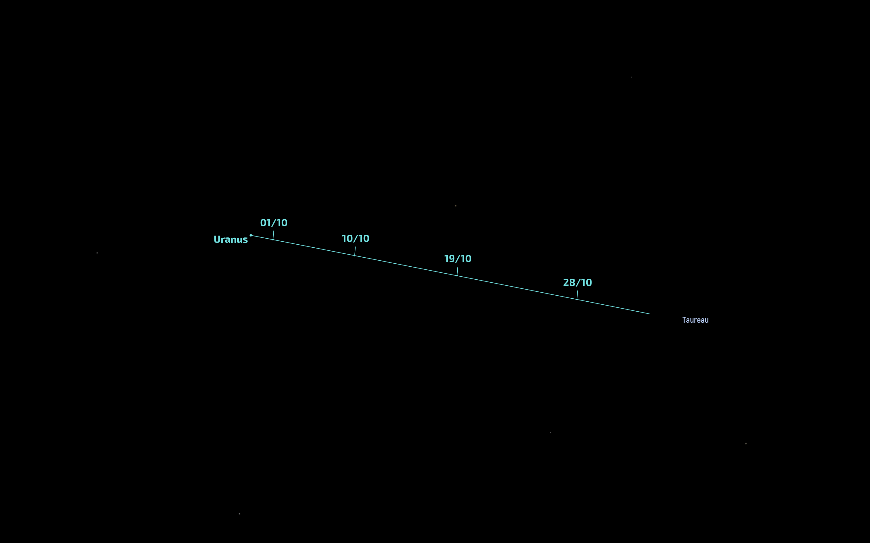 Un phénomène assez similaire aura lieu cette fois dans la nuit du 21 au 22 octobre 2025. Il verra Thétys occulter cette fois Rhéa (21e position, 1 528 km de diamètre, orbite à ~527 000 km de Saturne) Le phénomène sera visible à 21 h 30 min 18 s UTC, soit 23 h 30 min TLF sur vos montres.